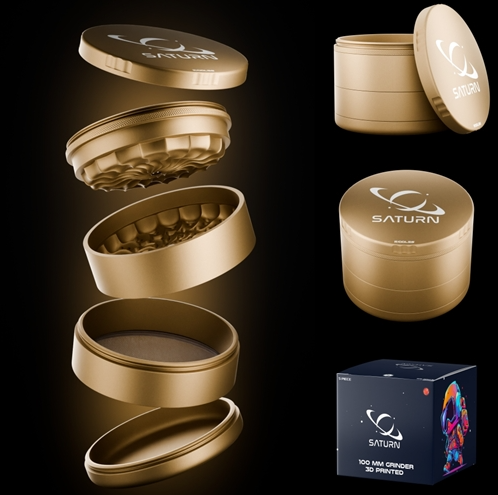 Experience unparalleled grinding with the RIDDLES SATURN 5 PIECE HERB GRINDER, an embodiment of advanced engineering and high-grade aluminum construction. This grinder boasts a substantial 100mm diameter and a height of 80mm, with an impressive weight of 480g, ensuring stability and ease of use. Its unique teeth technology sets it apart, designed to offer a superior and more consistent grind every time. The ergonomic grip paired with this innovative technology makes for an effortless grinding process. With its 5-piece configuration, this grinder includes varied compartment sizes and a stash jar in the top piece, enhancing its functionality. Whether for personal or professional use, its compatibility with a wide range of accessories and the robust build promises durability and efficiency.
