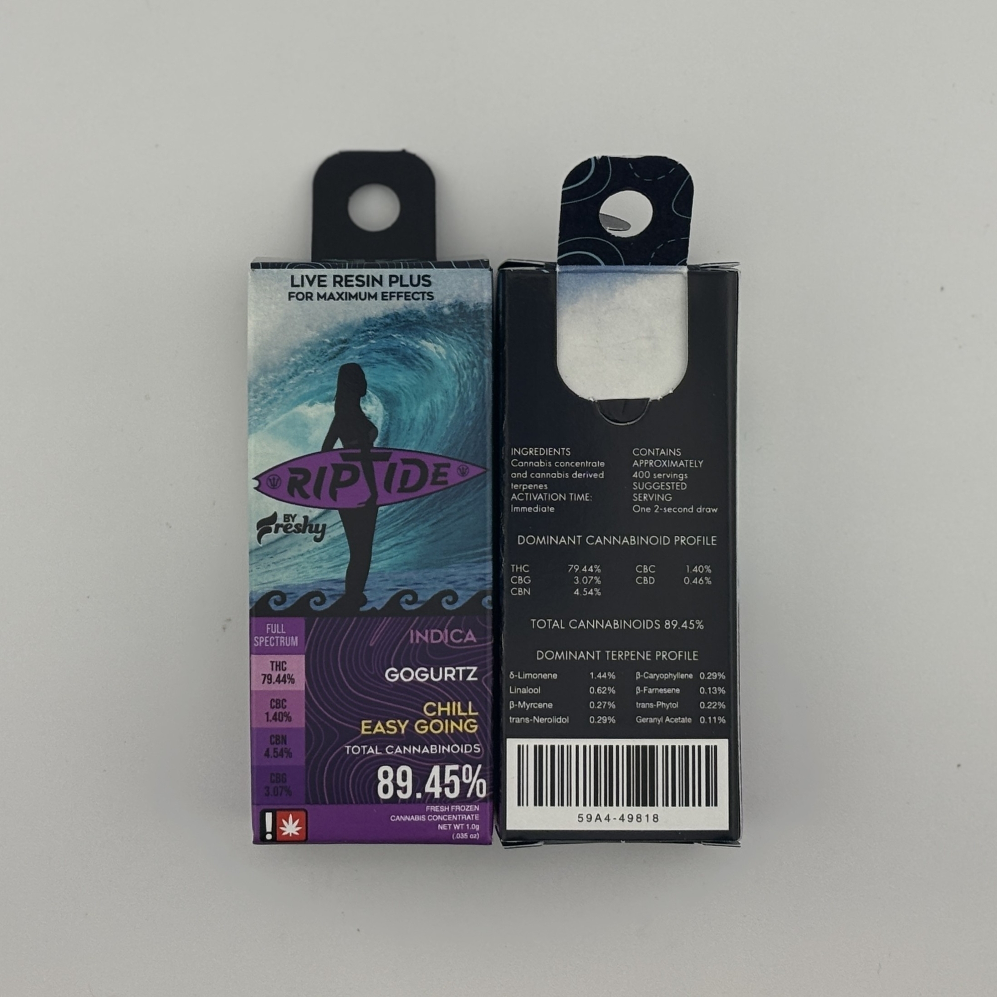 Relax and unwind with Riptide's Gogurtz live resin cartridge. This indica-dominant hybrid is the perfect way to melt away the stresses of the day. Crafted from fresh, flash-frozen flower, our live resin preserves the full spectrum of terpenes and cannabinoids, delivering a rich and authentic flavor profile. You'll be treated to a delightful blend of sweet berries and creamy, tangy yogurt with a hint of earthy undertones. Gogurtz provides a deeply calming body high that soothes muscles and promotes a sense of blissful tranquility, making it the ultimate choice for a peaceful and restful evening.